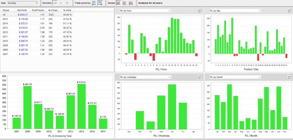 3本のEAを同時に稼働させたバックテスト結果の概要は、以下のとおりです。