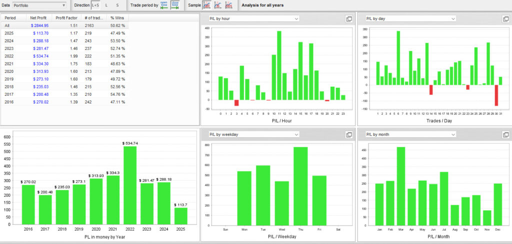 ロジックの有効性および長期的な挙動を確認する目的で実施したバックテスト結果を掲載しています。
